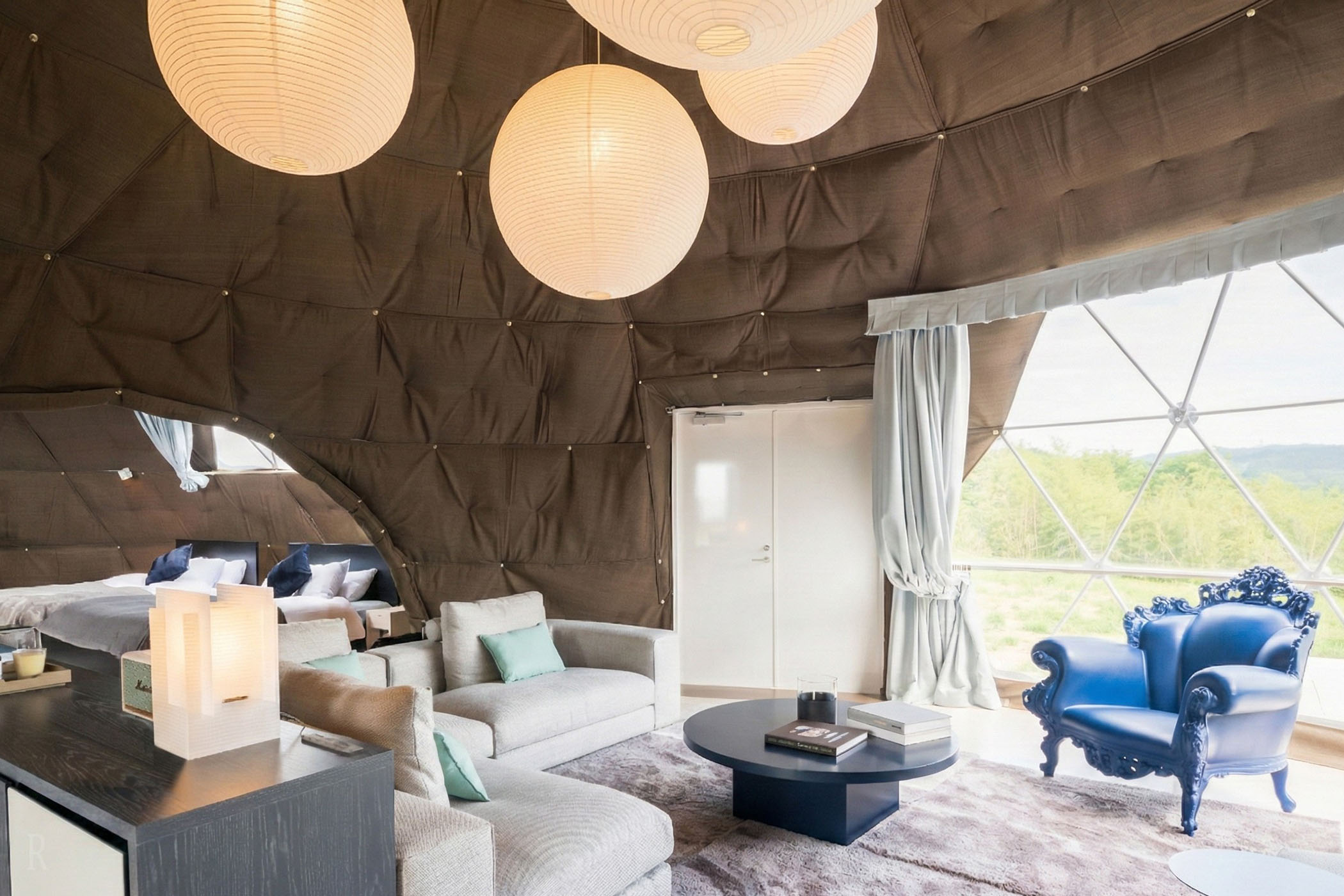 全ドームテント内に、スクリーンとプロジェクターを完備。ラグジュアリーな空間で、ゆったりと映画鑑賞を満喫いただけます。